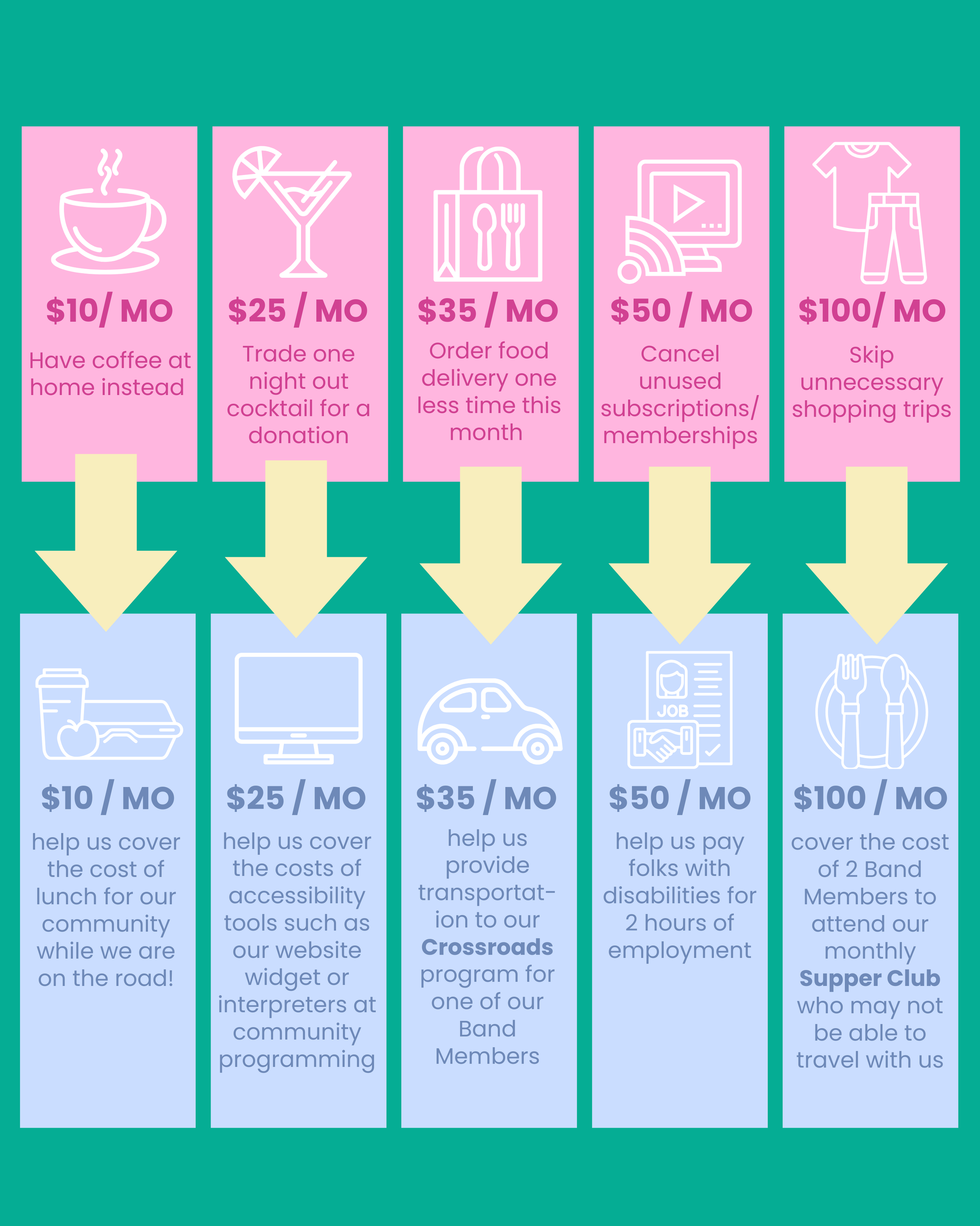 Not sure what monthly giving could look like? These small swaps can add up to big support for The Band.